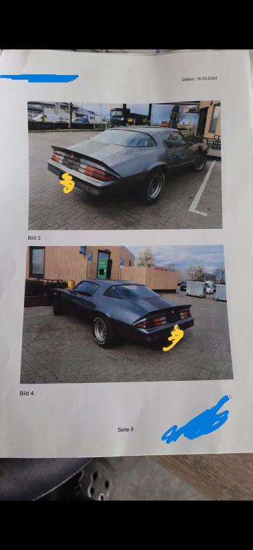 Ich würde die Finger davon lassen. Alleine wegen der Auspuffanlage könntest du schon, wie bereits gesagt, TÜV-Probleme bekommen, oder es wird dir die H-Zulassung entzogen. Dann kannst im Jahr so viel Steuern blechen wie das Auto wert ist. Was ist das da auf der Haube? Sieht aus wie eine Trans-Am Hood. Lenker auch nicht original. Hold dir lieber einen soliden Camaro der weitestgehend original ist, dann hast du weniger Stress und er ist dann auch Wert-stabil.