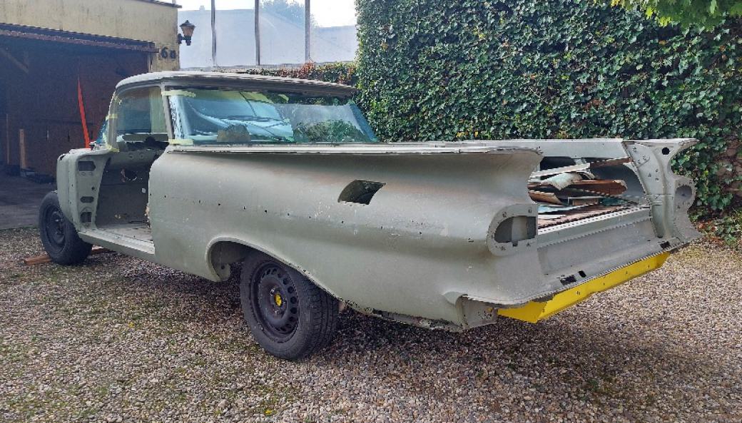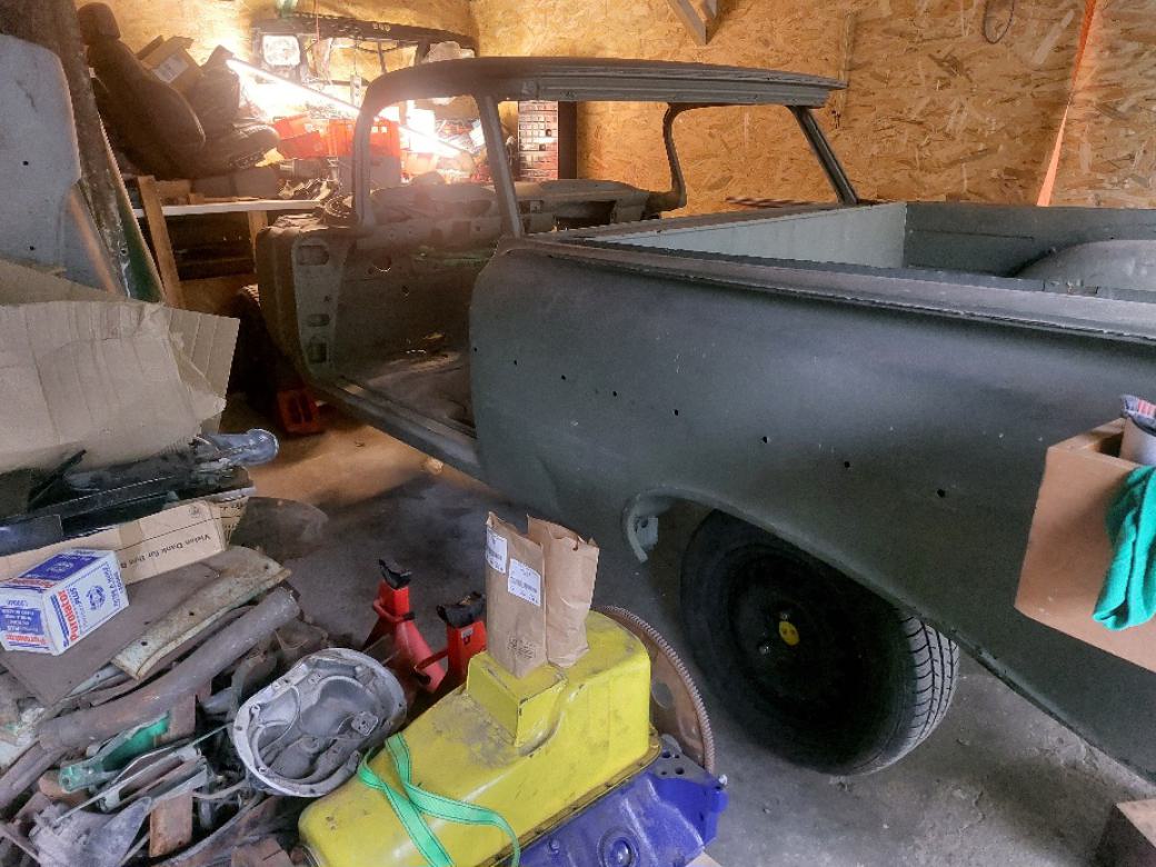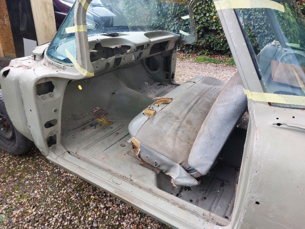 An der Fahrerseite hatte der Wagen irgendwann mal einen Treffer. Für das Loch gibt ein geformtes kleines Blech was man da hin schraubt. Ist auch vorhanden. Der Tank ist unter der Ladefläche. Tank Einfüllung hinten seitlich.