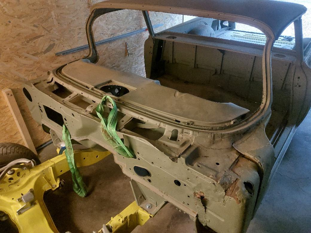 Heute Nachmittag dann endlich Zeit gehabt die Karosserie auf das Chassis zu stellen. Ohne Bühne oder sonstiges ein wenig mühsam. Der Kettenzug hat es gerichtet.