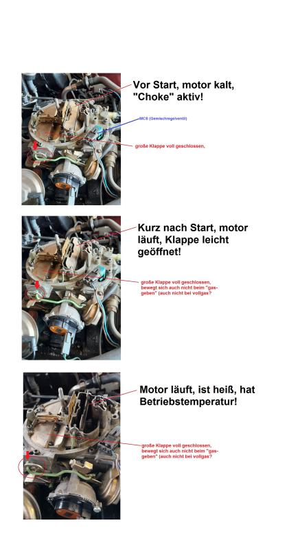 An was könnte das liegen? Irgendwer Ideen? ... die Startautomatik (Choke) habe ich schon geprüft, dürfte funktionieren (siehe Bild im Anhang) ... auffällig ist nur, dass er hin und wieder "knallt" im Auspuff bei höheren Drehzahlen ... und das die großen (sekundären) Luftklappen beim Vergaser nicht aufmachen (siehe Bild) - hab aber gelesen, dass diese nur unter Belastung aufmachen angeblich?