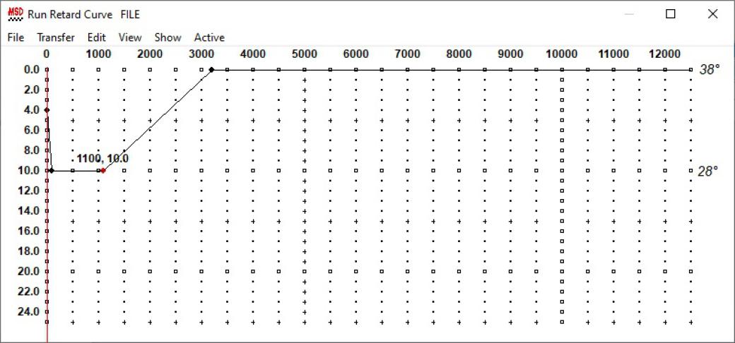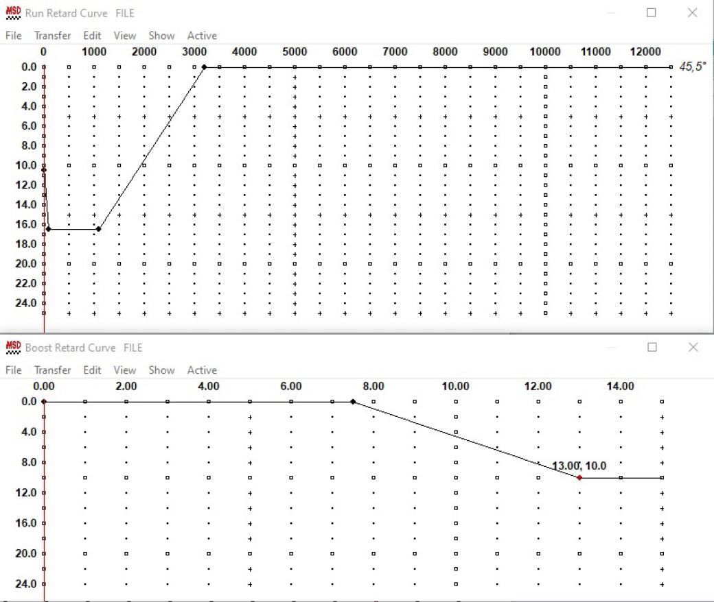 Hier ist die überarbeitete Zündzeitpunktkurve mit einem deutlich früheren Initialzündzeitpunkt: