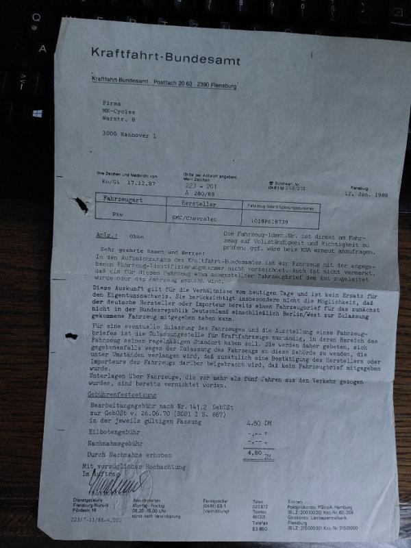 Dann würde ich mal nach so Leuten in USA schauen, die so alte Kisten irgendwo aus dem Busch zerren und die Fragen, wie sie wieder an Papiere kommen.