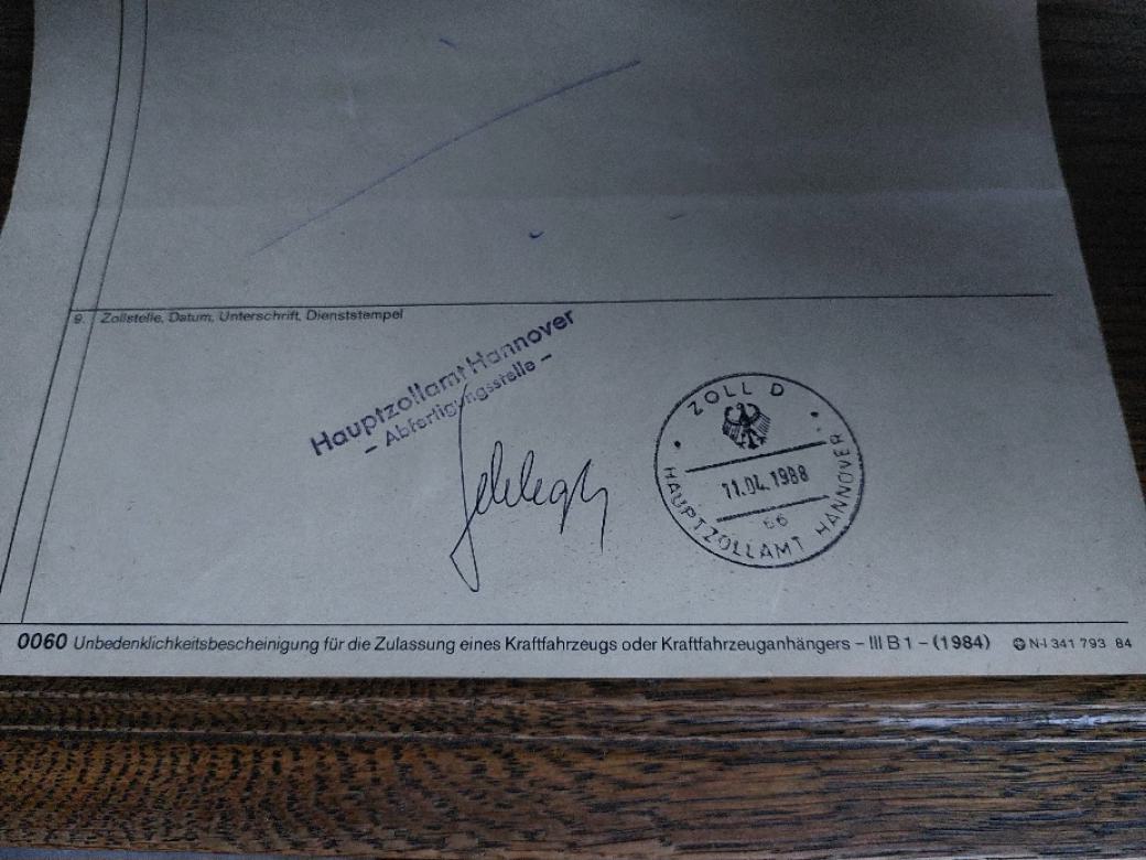 Das ganze ist aus dem Jahr 1988 vom Hauptzollamt Hannover, Abfertigungsstelle. Stempel Unterschrift sind drauf.